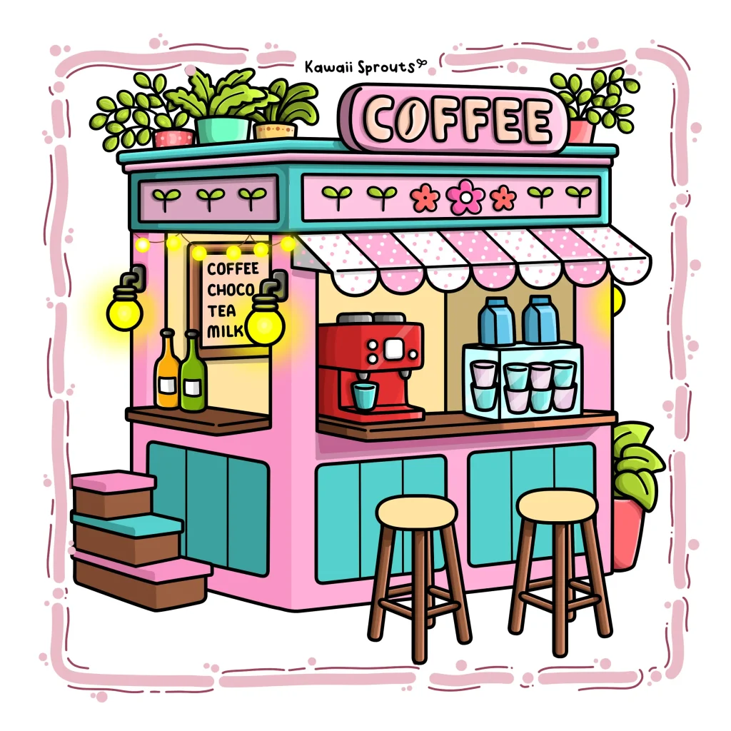 Note: Our coloring book will have 50+ pages of hand-drawn kawaii illustrations!